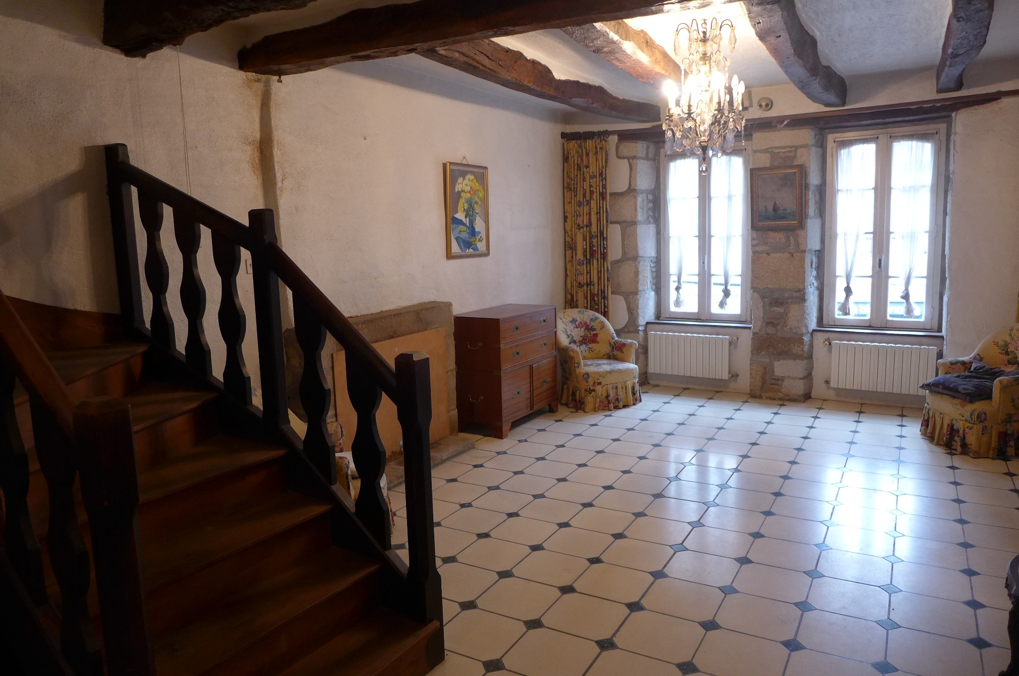 Premier étage : une spacieuse pièce de vie baignée de lumière, et une cuisine indépendante.