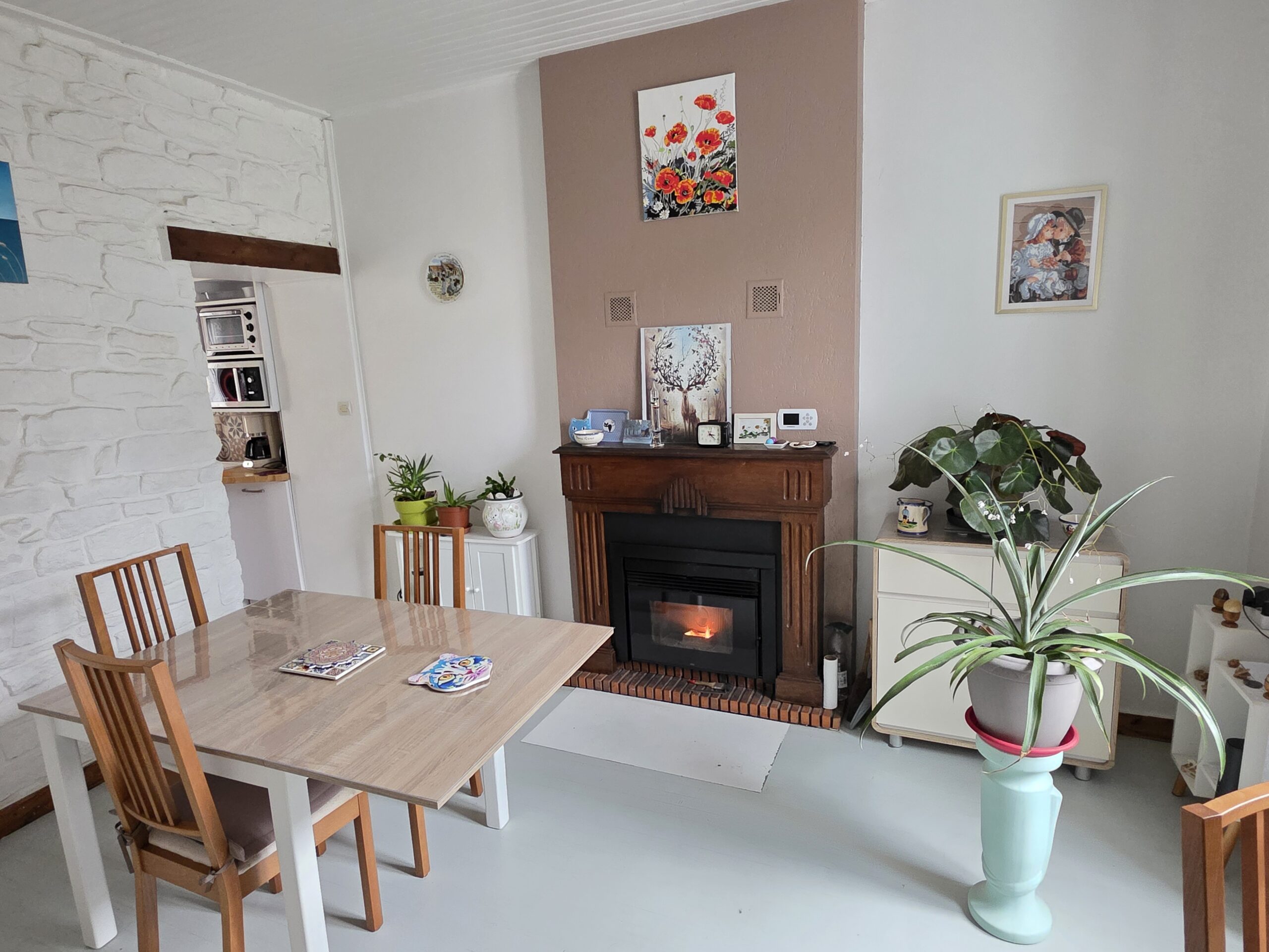 Une salle à manger conviviale avec poêle à granule
