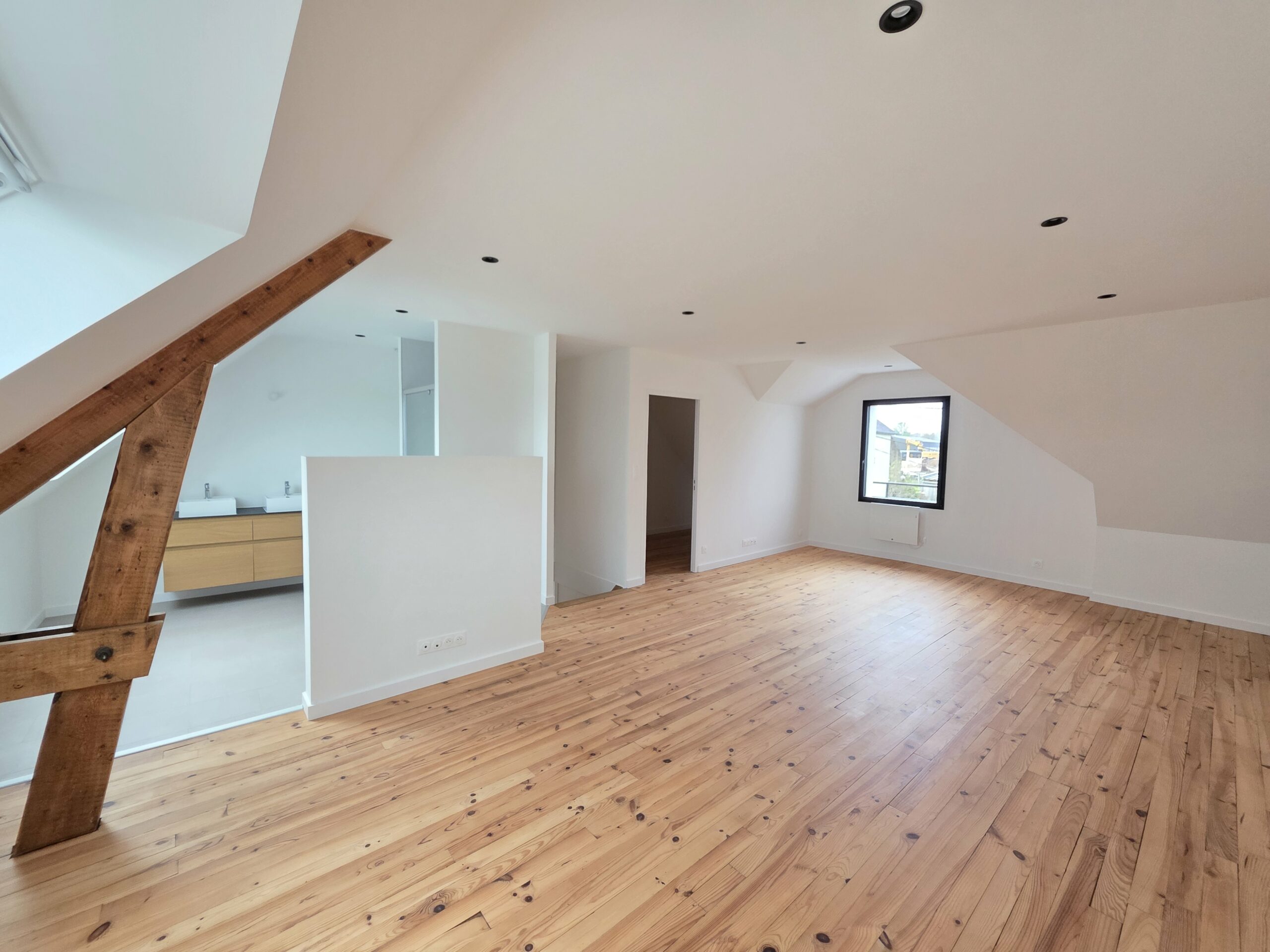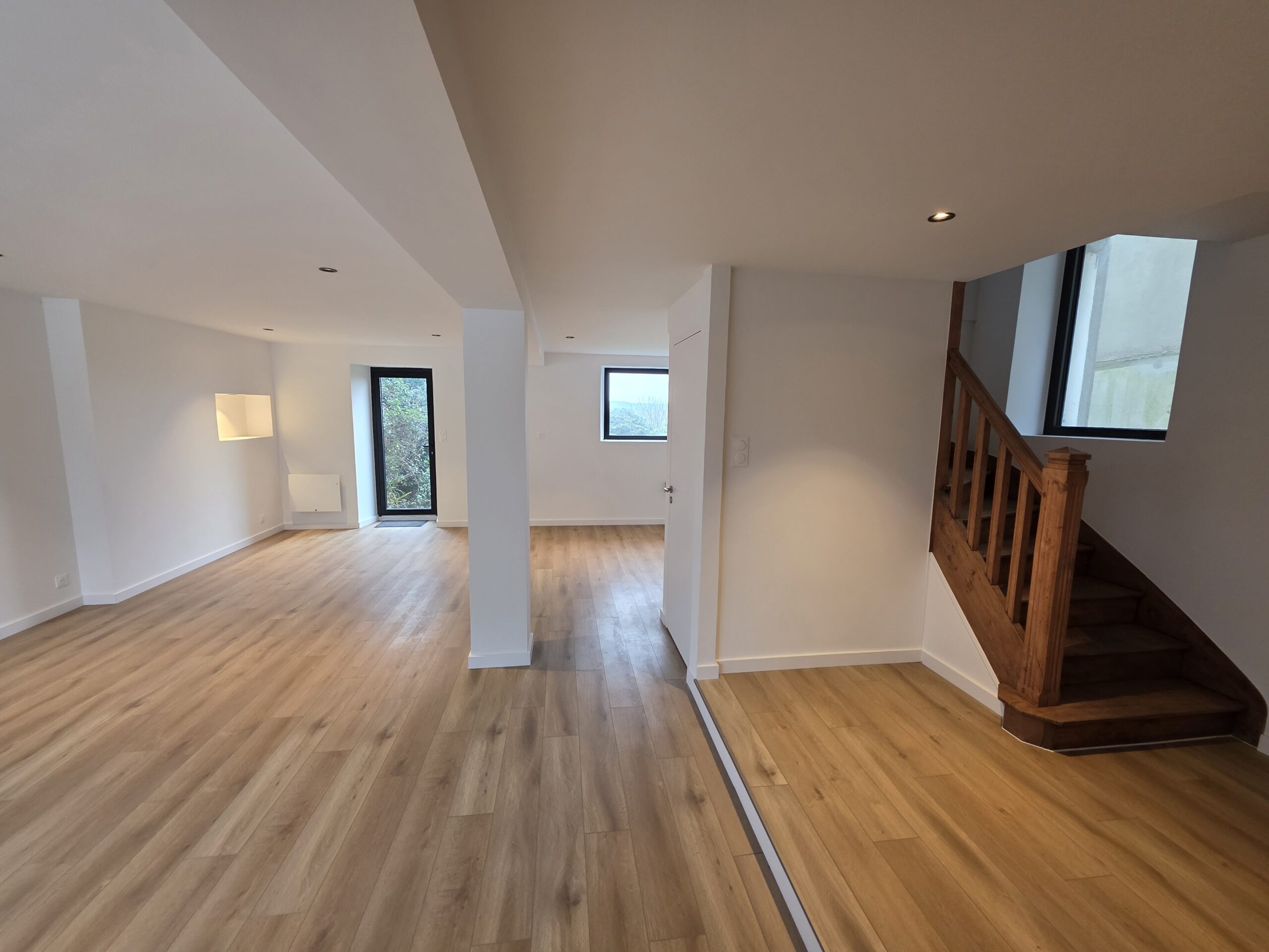 Vous trouverez en rez-de-chaussée une grande pièce de vie avec accès jardin et emplacement pour une cuisine