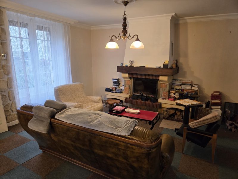 Le rez-de-chaussée se compose d’une grande pièce de vie lumineuse avec cheminée, d’une cuisine indépendante et d’une véranda prolongeant l’espace de vie.